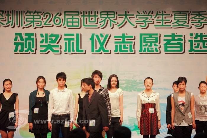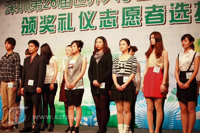 今天上午,来自全国各大高校深圳研究生院以及辽宁、湖北、海南等地的300多名选手中,不乏曾经担任过上海世博会、广州亚运会颁奖工作的礼仪志愿者。据悉4月底将进行全国终选。届时将有350名选手将接受“大运会颁奖礼仪志愿者”这一光荣称号。