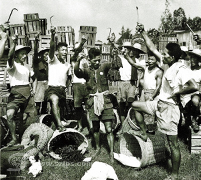 1974年,省文艺工作者参加劳动并在休息时表演节目鼓动干劲。