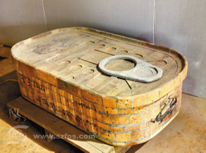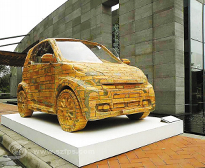 砖做的罐头、砖做的沙发、砖做的汽车、砖做的酒瓶……生活中林林总总的物件,在戴耘这里,都成了红砖青砖制品。而这些给雕塑界带来惊叹的作品,就出自这间简陋的厂房。