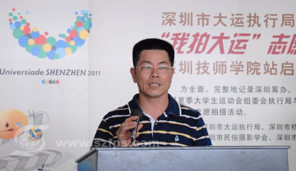 4月19日下午14:30,由深圳市大运执行局、深圳市档案局主办,深圳市民俗摄影学会、深圳市档案学会协办的“‘我拍大运’志愿摄影活动走进校园”启动仪式在深圳技师学院举行。出席此次活动的嘉宾有深圳市档案局督察指导处崔瑞武处长,我学会刘对现会长,深圳技师学院李选昌党委副书记以及深圳技师学院设计系摄影设计专业的师生们。