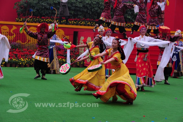 开幕式上,著名的“九色香巴拉”歌舞团献艺深圳,打造了一台全景式的藏族风情主题表演。通过热情的雪域歌舞、古老藏戏表演、绚丽的藏族服饰、醇香的青稞酒、“多彩甘肃”图片展、鉴赏最具藏族特色的绘画艺术品——唐卡,唐卡艺术家现场绘画、展示。丰富多彩的甘肃非遗项目等多个环节的展示,精彩诠释西藏情结,带大家走进梦幻之地——九色甘南“香巴拉”。