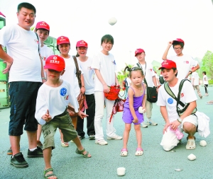 深圳大运会除了倡导节能环保外,另一个重要的理念就是号召市民参与其中。在参观完大运场馆之后,作为本次活动主办方,深圳商报在场馆门口举办了一场别开生面的运动会。