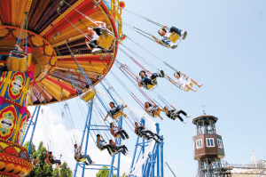 欢乐谷新推出的游乐项目——彩云之翼吸引了众多游客。覃春燕 摄