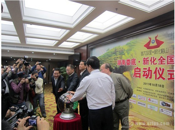 湖南省“蚩尤故里·新化梅山”娄底-新化全国摄影大展启动仪式于2011年10月18 日在长沙市湘府国际大酒店盛大开幕。广州军区原副司令员、中将龚谷成,中共湖南省常委、宣传部部长路建平,湖南省人大常委会副主任蔡力峰,湖南省高级人民检察院检察长龚佳禾,娄底市人大常委会主任王信卿,娄底市政协主席杨云辉,中国摄影家协会副主席邓维,中共娄底市委常委、娄底市人民政府副市长候选人周纯良,新化县委书记吴建平等领导出席了本次启动仪式。