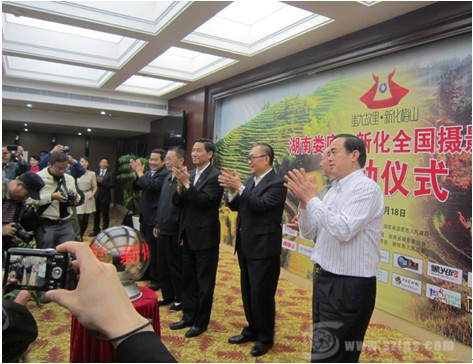 在一阵欢乐的气氛中,启动仪式顺利落下了帷幕,这也标志着本次“蚩尤故里·新化梅山”湖南娄底摄影大展正式拉开序幕。本次摄影大展将是湖南有史以来官方投入最大、赛事规格最高的摄影活动之一。大展集各界政要、国内外顶尖的摄影家、艺术家、商界社会名流和精英,时间跨度达1年之久。将按照“古韵新化.冬季风情”、“绿色新化.春季风情”、“热情新化.夏季风情”、“金色新化.秋季风情”和“青春新化.四季风情”分阶段递次展开摄影活动,彰显娄底、新化得天独厚的的旅游资源。并以 “蚩尤故里-影像梅山”为主题,通过镜头去发现与探索中国远古战神蚩尤故里的神奇与奥妙,同时也为喜爱摄影的人提供一个学习交流,分享感动,畅享优美自然风光的舞台。
