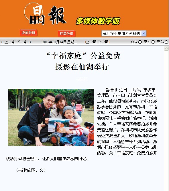 深圳市“幸福家庭”公益免费摄影在仙湖举行
