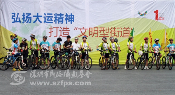 启动仪式上,现场大屏幕播放了龙岗区绿道建设宣传片。经过近年来的建设,龙岗区一条条被郁郁葱葱的植物拥簇环抱的自行车绿道展现在大家眼前,这些绿道已基本形成了与省绿道的互联互通。当天上午,蒋尊玉、姜建军一行与自行车运动爱好者一起,骑上自行车,从大运中心广场出发,在龙岗优美的生态环境中体验了一把绿色出行带来的快乐。