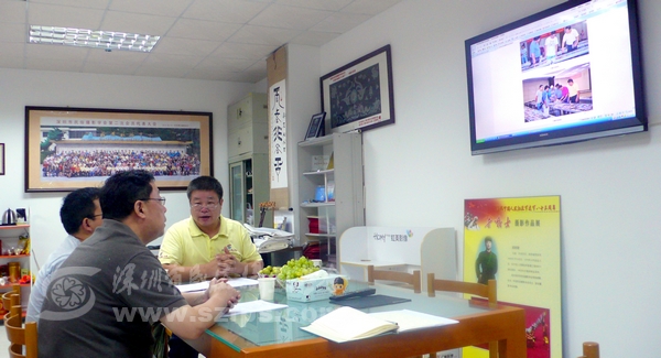 2012年9月25日上午,深圳世纪华业非物质文化遗产投资有限公司投资总监全亚东一行来学会考察,学会会长刘对现热情接待并详细介绍学会情况。