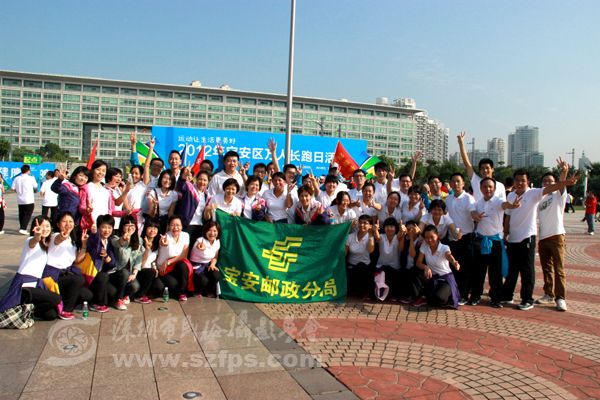 11月1日上午,宝安海滨广场上人声鼎沸,格外热闹。来自宝安各个机关单位和群众团体的8000人参加了声势浩大的2012年宝安区万人长跑日活动。宝安邮政分局的100多名干部员工也积极参与到了其中,展示了我局朝气蓬勃、奋发向上的精神面貌,营造了全民健身的良好氛围。