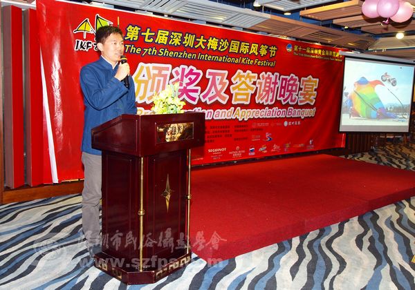 (颁奖晚宴上市风筝协会秘书长于灏讲话)