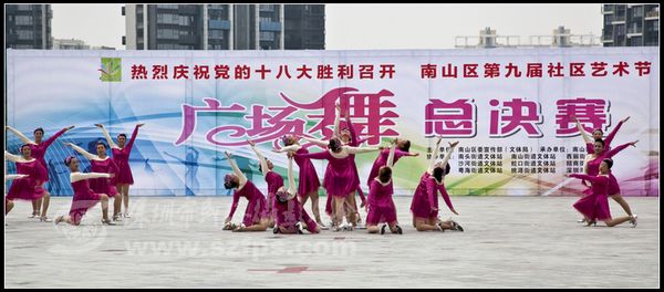 2012.11.15下午3:00由南山区委宣传部(文体局)主办、南山区文化馆承办,区属八个街道文体站、深圳湾体育中心协办的热烈庆祝党的十八大胜利召开南山区第九届社区艺术节暨南山区广场舞总决赛在深圳湾体育中心大树广场隆重举行。深圳市文体旅游局文化艺术处处长张晋文、南山区副区长曹赛先等领导出席了本次活动。