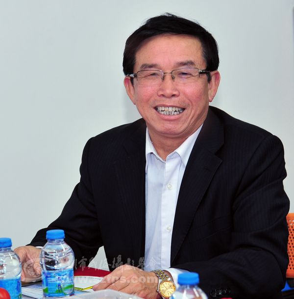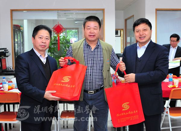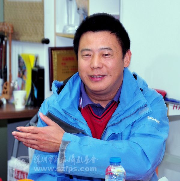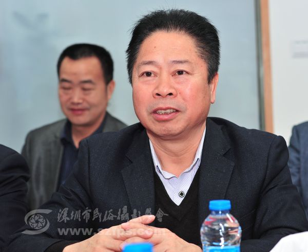 深圳市民俗摄影学会会长刘对现向三都领导介绍学会办工室