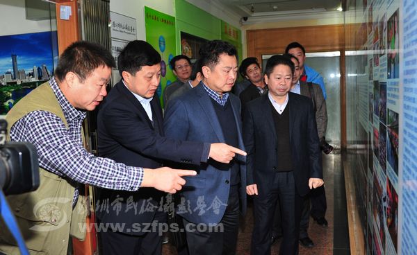 深圳市民俗摄影学会会长刘对现与三都县领导参观学会6年来工作宣传栏