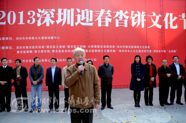 国家非物质文化遗产专家委员会副主任委员、民俗专家乌丙安宣布2013迎春沓饼文化节开幕