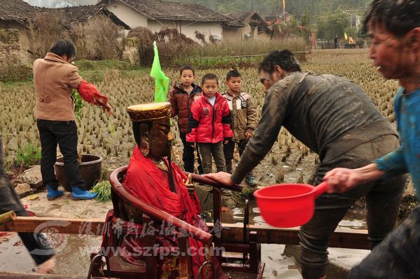 活动结束村民正在清洗菩萨,祈求来年风调雨顺、五谷丰登。