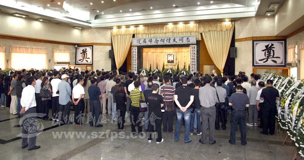 4月25日上午九时三十分,何煌友遗体告别仪式在深圳殡仪馆大礼堂举行。