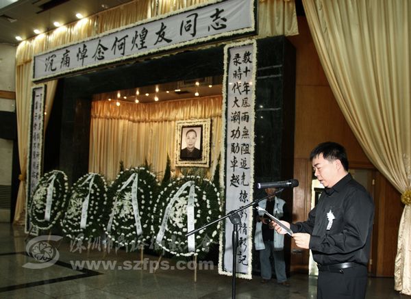 何煌友遗体告别仪式在深圳殡仪馆大礼堂举行