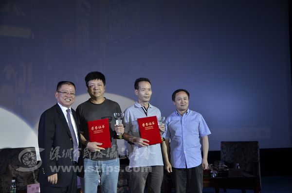 深圳报业集团副总编辑、深圳晚报总编辑丁时照,深圳市书香门第投资发展有限公司董事长廖宇波为二等奖获得者颁奖