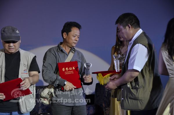 深圳市民俗摄影学会会长刘对现为三等奖获得者颁奖