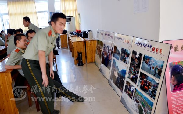 借助2013年07月21日的“八·一建军节 走进部队”摄影活动的东风,深圳市民俗摄影学会在武警医院卫训队开展题为《从江县少数名族风情》的摄影展览,此次参展的优秀图片出自著名摄影家梁全康之手。数量丰富、内容精美、意义深厚的少数民族风情图片,深深的吸引着官兵们的眼球。以前仅仅是听说过的少数民族风俗和服饰等内容,现在真真切切的展现在战士们的面前,少数名族的神秘面纱被摄影师慢慢揭开。