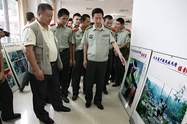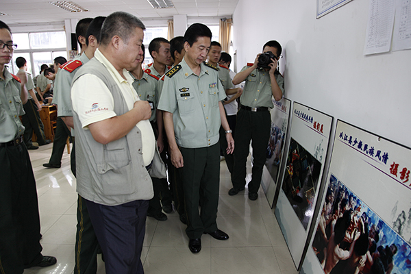 据悉,此次摄影展览受到了广东边防武警医院卫训大队的官兵们的热烈欢迎,展览一经展出就吸引了许多官兵前往参观,武警医院李慎明政委、黄琦教导员、宫建伟大队长也参观了此次展览。李政委表示摄影展的摄影风格为官兵们更加了解少数民俗的独特风情,被贵州省从江县少数民族风情深深吸引。