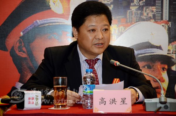 转业深圳的基建工程兵代表香港卫视国际传媒集团董事局主席高洪星讲话