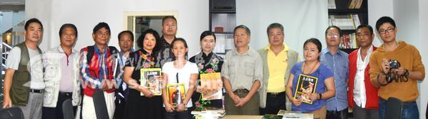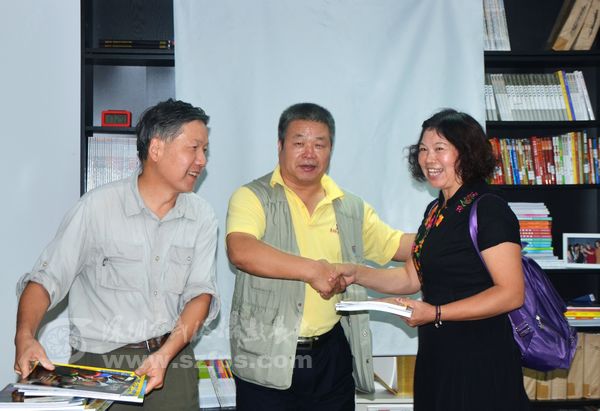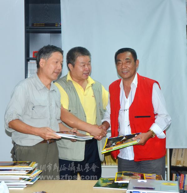 研讨会结束后,香港中国旅游杂志社编辑部主任黄焱红和深圳市民俗摄影学会会长刘对现一起给影友们颁发奖品:《中国旅游》珍藏刊、《华夏人文地理》珍藏版、《中国民俗摄影•水族非遗》共3本。