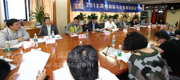此次发布会有深圳市文体旅游局文体产业发展处处长解汝成主持。2013深圳国际马拉松赛秘书长、深圳市文体旅游局巡视员柯刚明做了赛前筹备情况发布。深圳市第二人民医院运动医学科副主任朱伟民做了赛前运动科学指导。2013年深圳国际马拉松赛副主任、深圳市政协人口资源环境委员会副主任麦务强、2013深圳国际马拉松赛幅秘书长、深圳安琪食品有限公司总经理梁翰辉、国际裁判员程幼新、国家级裁判员谭丽宏老师及此次赛事推广单位中奥路跑工作人员出席了此次发布会。