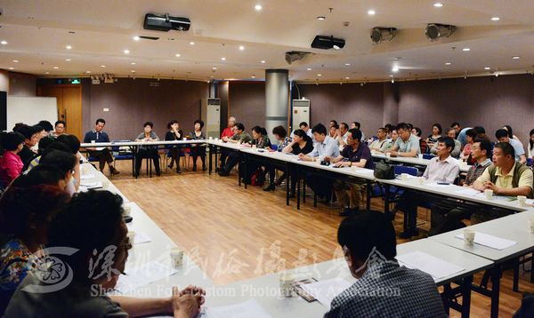 罗湖区百仕达皮影艺术团、深圳市红叶艺术团、深圳市民俗摄影学会、宝安曲艺团、深圳市十二月舞蹈艺术团、深圳市邸叙然小品话剧团六家团体会员代表就民间艺术挖掘与创新、参与市区公益文化服务、对外文化交流、文艺精品创作、开展公益文化、自创品牌文化活动等方面发言并进行了交流探讨。