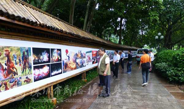 2014年5月4日上午,由深圳市文体旅游局主办,深圳市公园管理中心荔枝公园、深圳市民俗摄影学会、信宜市摄影家协会承办的民俗•风情•风光图片展在荔枝公园展出。在布展的过程中,很多游客兴致勃勃地参观展览,纷纷被美丽的景色吸引。