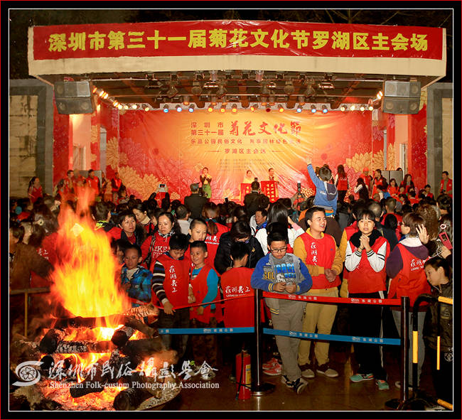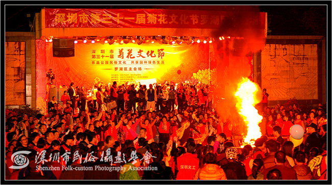 12月13日晚上7点,深圳市第31届菊花文化节重头戏篝火舞会即将拉开帷幕,主题为“深圳义工牵手菊花文化节走进篝火晚会大联欢”在东湖公园文化广场的熊熊火焰中隆重举行。 在菊花展期间多个义工团队为本次文化节做出了大量的义务工作,为了感谢他们的辛勤付出,特意筹备了这场晚会,分别有黄贝街道义工联、深圳市罗湖外语学校阳光义工联、爱心鹏城联盟协会义工联、地铁义工—罗湖组、罗湖区深蓝志愿者协会共700余义工参与由他们自编自导的演出,晚会吸引了大批摄影爱好者前往参加创作拍摄,近2500余群众参与篝火舞会,整场晚会人潮Hing翻了整个广场,在一首“感恩的心”音乐中结束了深圳市第31届菊花文化节。