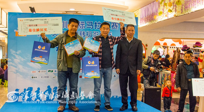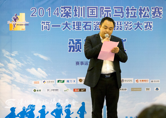 2014年12月23日上午,2014深圳国际马拉松赛简一大理石瓷砖摄影大赛颁奖仪式在君尚百货举行。2014深圳国际马拉松赛组委会副秘书长、深圳市安琪体育营销有限公司副总经理姜宏亮,深圳简一大理石瓷砖副总经理沈少华,深圳市君尚百货有限公司总经理温小华,深圳市民俗摄影学会会长、中国民俗摄影杂志社社长刘对现,深圳市民俗摄影学会副会长、国家级摄影高级技师马庆芳为摄影大赛的获奖选手颁奖。