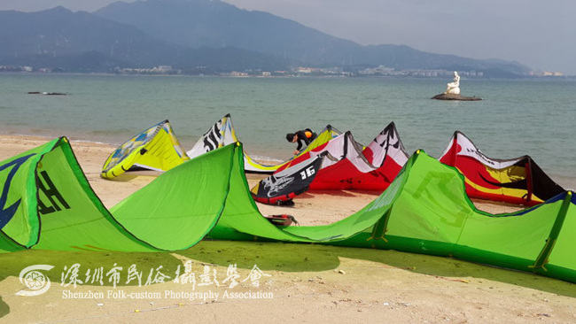 作为今年风筝冲浪界的收关之战,第三届深圳风筝冲浪公开赛28日在大鹏湾畔落下帷幕,经过两天激烈的角逐,各组冠、亚、季军各有所归。 此次,公开赛由深圳市文体旅游局、深圳市体育总会主办,深圳市风筝协会承办,赛事执行新制定的国际风筝冲浪比赛规则。本次比赛除内地选手外,还吸引了港澳等地区的知名选手前来参赛。大赛共有22支队伍参赛,分别进行竞速和花式比赛,经过两天的激烈的角逐,其中决赛冠军由来自深圳本土选手张华宝获得,亚军、季军分由来自香港选手董敏南、欧志强获得。我学会组织了10余名会员参加了本次的活动,对本次大赛全程跟踪拍摄,捕捉大赛的精彩瞬间,为深圳市风筝冲浪运动留下了珍贵的影像资料。