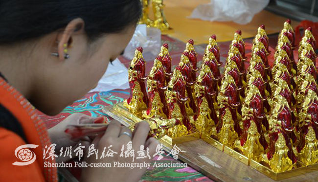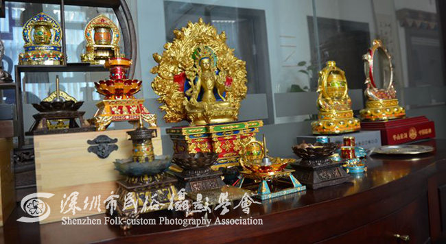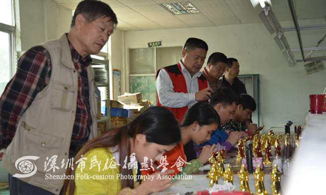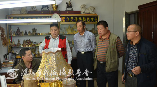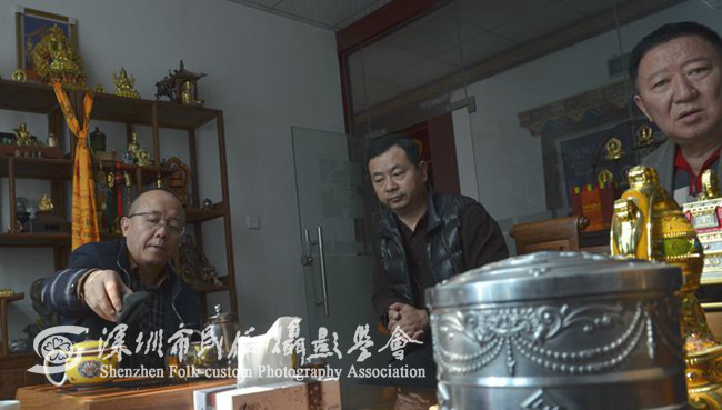 影像西部网 环球旅游频道 中国旅游信息报龙岗讯(记者 鲁华)2015年2月3日下午,深圳市民俗摄影学会会长刘对现、中国民俗摄影协会西部工作站站长王雪峰一行来到位于深圳市龙岗区坂田上雪金鹏工业园区的深圳德田文化发展有限公司,对企业开发研制的藏族佛教文化产品进行了现场调研。德田文化公司总经理樊永亮热情接待了刘对现一行。 深圳德田文化发展有限公司是一家专门研制开发藏族佛教文化产品的公司,产品不仅包括整个藏传佛教文化用品,而且开发出了许多带有丰富藏教色彩文化内涵的现代时尚日用产品,在国内外占有相当的营销份额。这次刘对现一行的参访,就进一步研制开发藏教在异域文化的传承与发展,联手打造改革开放前沿窗口的文化交流,具有非常实际的现实意义。 座谈会后,刘对现一行参观了公司产品研发、产品组装、产品彩绘等工序的工作现场,并与公司领导一起合影留念。 中国体育摄影学会常务理事、环青海湖国际公路自行车赛专刊编委会副主任兼主编李全举,深圳市民俗摄影学会副秘书长李群、会员李铁成,德田文化公司副经理王生禄等参加了全程参访活动与座谈。