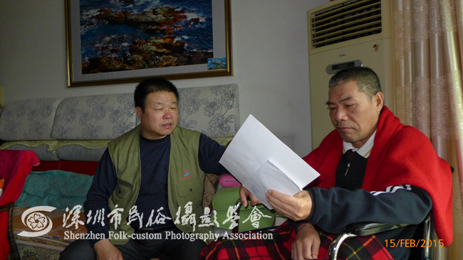 2015年2月15日下午,我会探望学会理事兼副秘书长蔡惠生先生。会长刘对现,创作部主任王东海,驻会工作人员苏亚锋,一同前往看望。蔡惠生先生在深圳家中进行康复治疗,身体状况恢复的很好,语言表达能力上已经能够流畅交流。