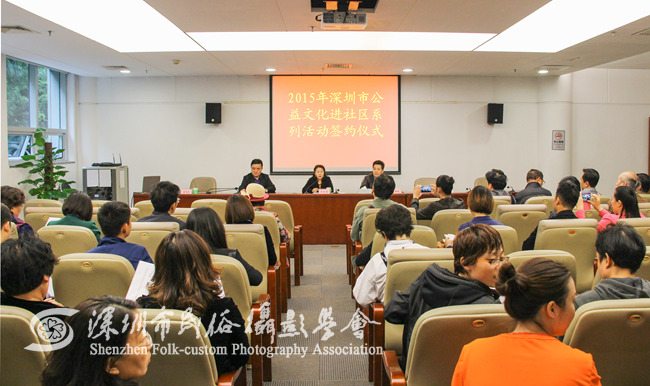 2015年3月26日下午,2015年度深圳市公益文化进社区系列活动签约仪式在深圳市市民中心举行签约仪式。社会团体及个人会员、办事机构人员共约上百人参加。