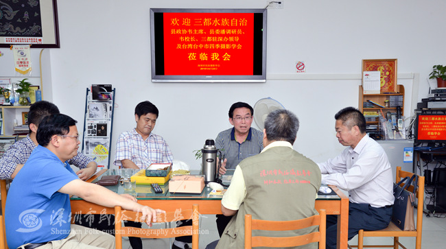 我会刘对现会长、马庆芳副会长、李群副秘书长、驻会工作人员曾嘉淇、会员徐宝如与其就深圳、三都水族、台湾台中市三地的民俗摄影与民俗文化进行了亲切友好的交流会谈。