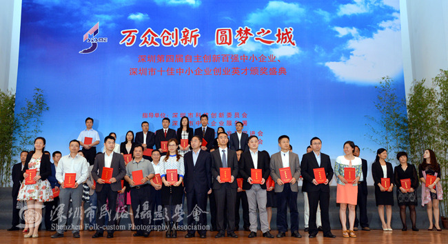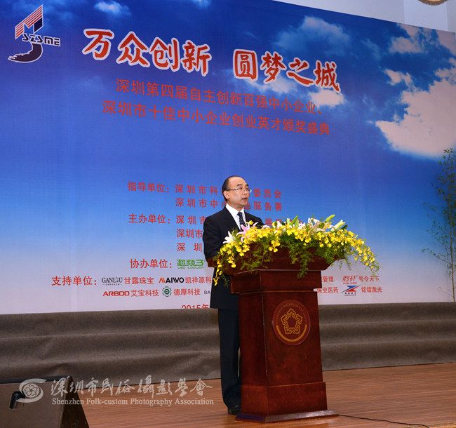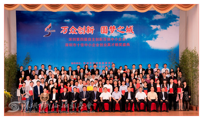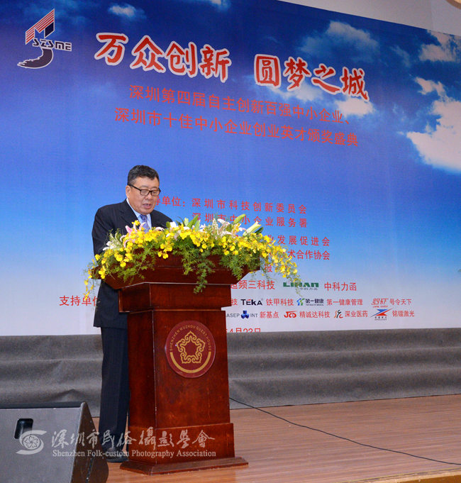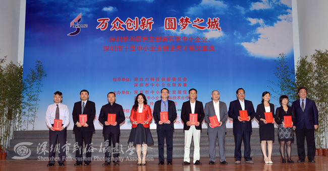 2015年4月23日下午,由深圳市中小企业发展促进会、市中小企业国际技术合作协会、深圳特区报社联合主办的深圳第四届自主创新百强中小企业暨十佳中小企业创业英才颁奖盛典在深圳五洲宾馆五洲厅隆重举行,市长许勤、市中小企业发展促进会会长王顺生等领导到场与会并发表重要讲话。我会作为官方唯一指定摄影单位进行全程拍摄。