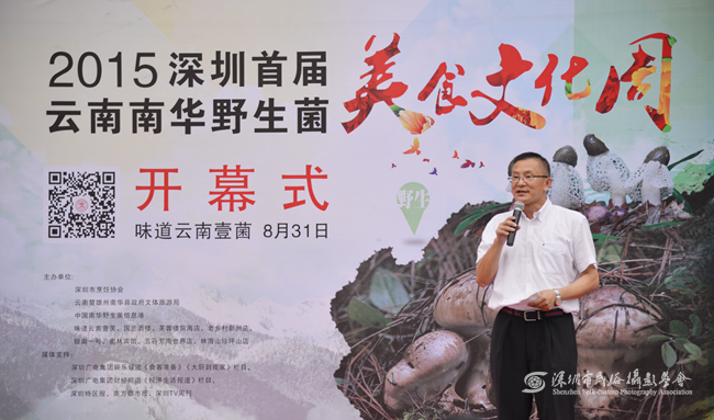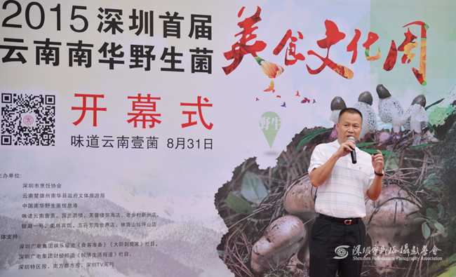 活动由深圳市烹饪协会、云南省南华县政府和南华野生菌信息港联合举办,深圳市民俗摄影学会受邀请到现场记录现场开幕仪式。