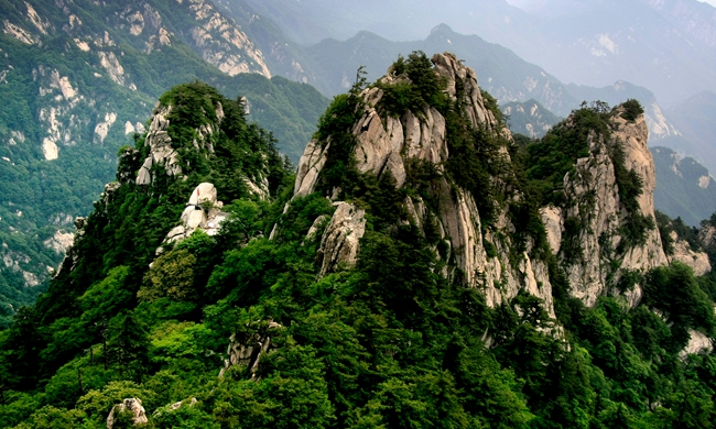 大山壁立,异峰如塑,怪石纷呈,是尧山自然风光的一大特色。站立主峰玉皇顶上,千岩万壑,飞龙走凤,远近高低,景色迥异,构成了一幅幅美不尽收的图画。新华社原社长穆青曾两次登上尧山,并为尧山的秀色所陶醉,欣然留下了“中原独秀”的墨宝。