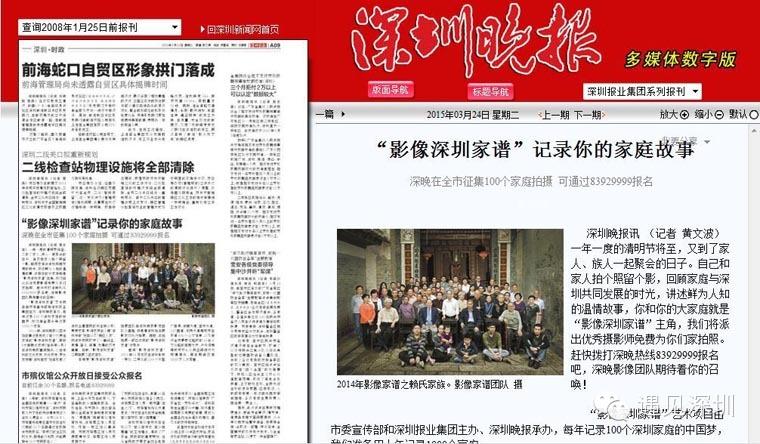 影像深圳家谱媒体刊登 深圳晚报
