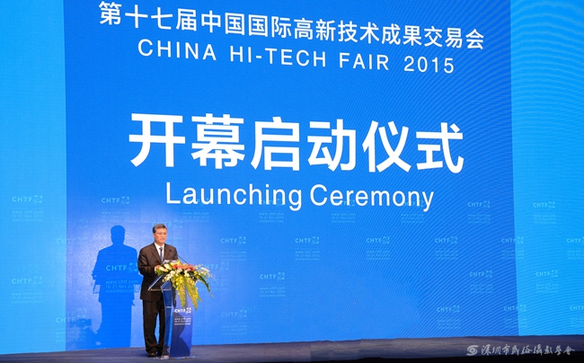 11月16日,第十七届中国国际高新技术成果交易会(以下简称“高交会”)在深圳会展中心拉开帷幕。中共中央政治局委员、广东省委书记胡春华,中国工程院院长、中国工程院院士周济,广东省委副书记、省长朱小丹出席开幕启动仪式。启动仪式由高交会组委会主任、深圳市长许勤主持,随后,广东省委副书记、深圳市委书记马兴瑞同志,商务部部长助理、党组成员童道驰先生依次上台致辞并高度肯定了本届高交会。