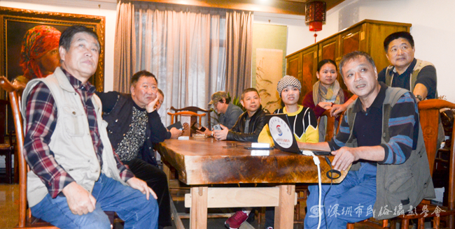 12月10日下午,深圳市民俗摄影学会组织了10余名会员影友在东湖路景亿山庄典范别院问竹茶舍举行了评片活动。会长刘对现,副会长马庆芳,副秘书长李群,会员李铁成、武学斌、纪永协、王东海等人参加评片活动。值得一提的是,中国民俗摄影协会常务理事、西部工作站站长王雪峰,黑龙江伊春市委宣传部外宣办副主任谭景涛也来到深圳市民俗摄影学会进行友好访问,并一同参加了本次评片活动,大家相互交流摄影心得、摄影乐趣。