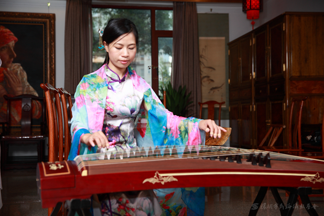 随后,问竹茶舍的湘家妹子刘姝言倾情演奏了一曲古筝名曲《战台风》,以飨听众。