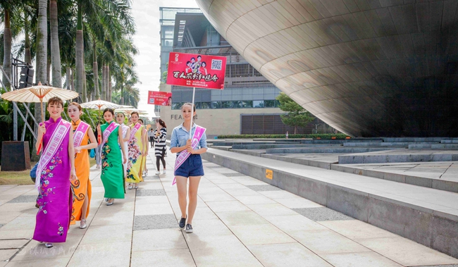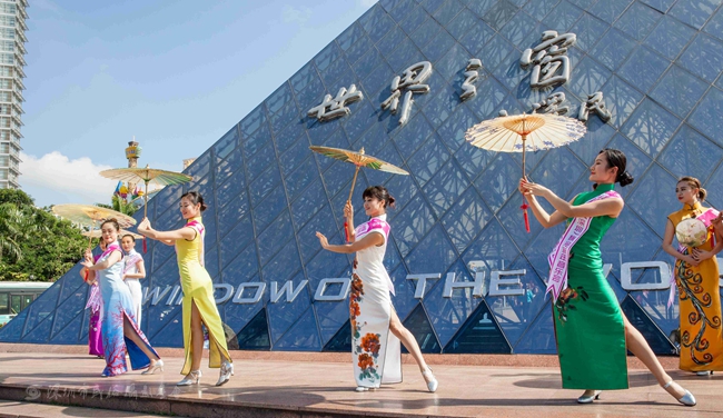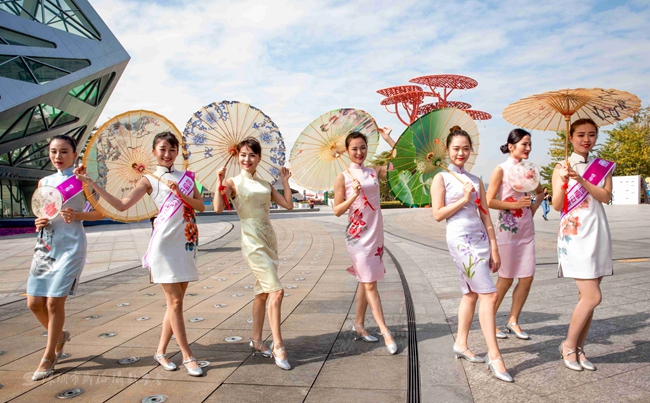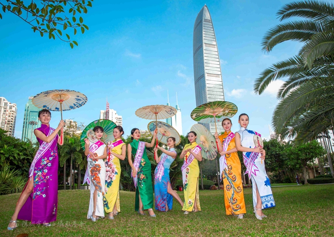 上午10时,旗袍快闪秀首先在深圳罗湖区东门老街拉开帷幕。10多位佳丽身着旗袍,在东门老街、京基100、帝王大厦、欢乐海岸、世界之窗、水贝珠宝城、荔枝公园、深圳地铁等多个具有文化特色和地标文化的地方舞动,展示了东方女性的旗袍之美。除了中国传统的飘逸灵动的旗袍秀之外,还有中西合璧的爵士舞、油纸伞、团扇展示的精彩演示,为广大市民群众献上了一场难得的视觉艺术盛宴。