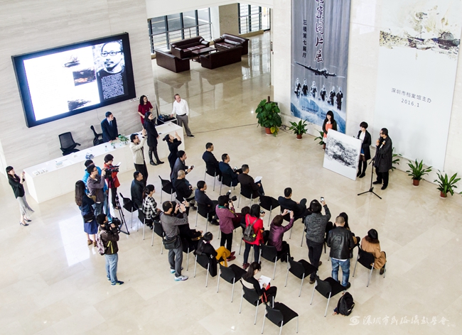 1月5日下午,当代艺术家沈丕基向深圳市档案馆捐赠作品仪式暨“见圳——沈丕基在深圳当代油画展”开幕式在市档案中心B座举行。仪式由深圳市档案馆副馆长唐国彬主持,馆长张晋周出席仪式并发表讲话。深圳市民俗摄影学会、深圳民俗摄影网等媒体记者,以及各界人士近百人参与活动。