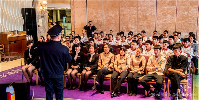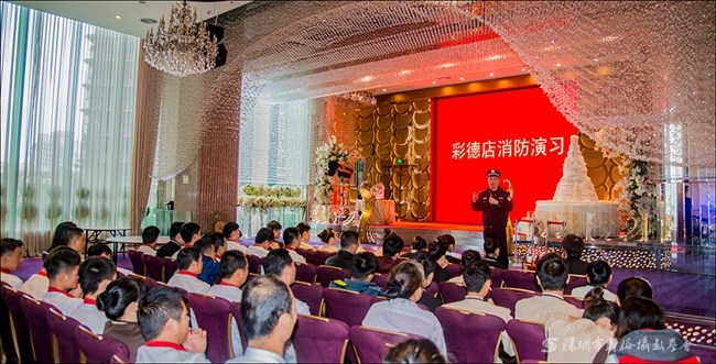 春节临近,为切实提高企业员工消防安全意识,预防重特大火灾事故的发生,确保福田区消防安全形势持续稳定,2016年1月11日下午,福田区华富派出所警员走进彩德唐宫酒店,采用理论授课和实地演练相结合的方式,开展了一次消防安全培训演练,近百名员工“真枪实战”学防火。