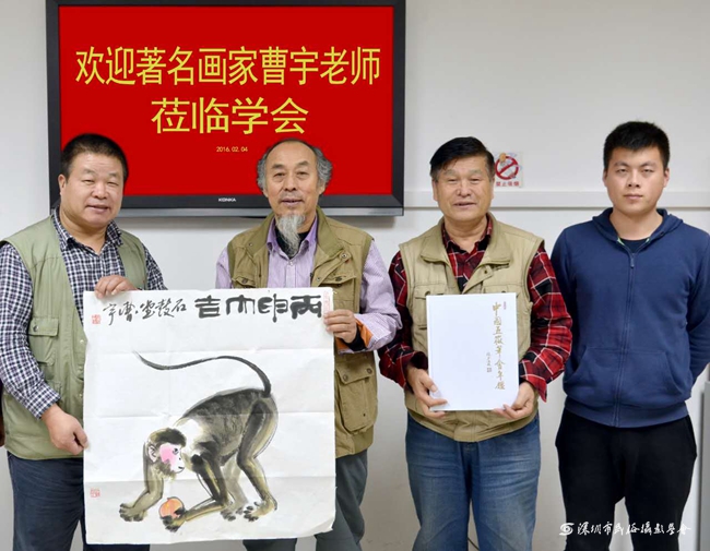 著名书画家曹宇莅临学会并赠与字画送猴年祝福