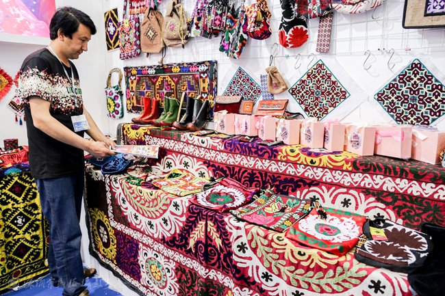 其中,“一带一路”馆是在去年“丝绸之路”馆基础上扩展而成的,是今年展馆的焦点之一。展馆内容更为充实,去年受邀国家主要展示传统工艺品,今年则有一些现代的艺术设计品和科技产品。