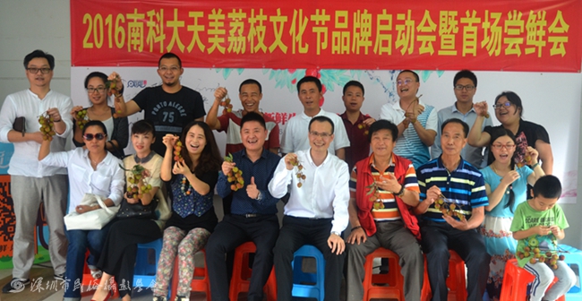 5月21日下午,雨过天晴,由天美农业和田觅觅联合主办,M16次方工坊协办的2016南科大天美荔枝文化节品牌启动会暨首场尝鲜会在深圳市南山区南方科技大学荔枝基地召开。作为本次活动的支持媒体深圳电视台、南方都市报、宝安日报、蛇口消息报和来中国媒体新闻网、影像西部网深圳站、深圳民俗摄影网、丝路月刊杂志、自爱票网、潮生活、一颗包菜、财蜂网、深圳民俗摄影学会、深圳论坛等10多家合作伙伴约50名代表到会。